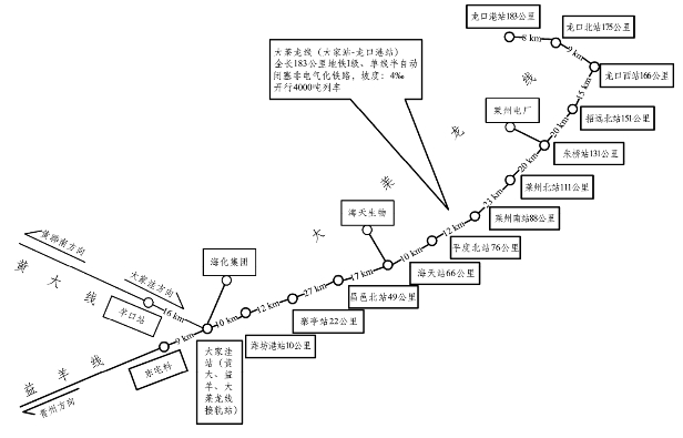 当前受益羊、大莱龙铁路车站到发线有效长、企业客户翻车机技术参数限制,大家洼方向列车以开行C64型或C70E型普列为主,万吨列车在黄大铁路具备分解条件的车站(海兴南、滨城、利津站)分解为普列。