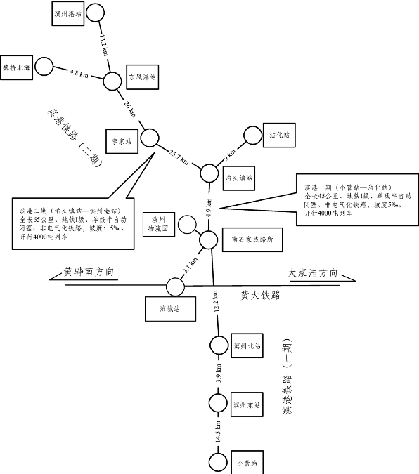 ① 黄大铁路与滨港铁路列车交接地点为滨城站。