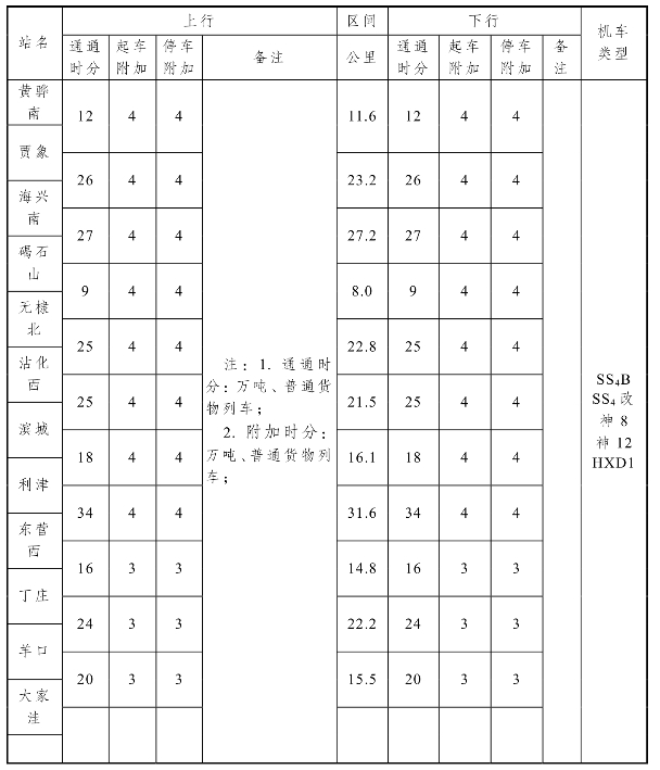 注:货物列车上下行区间通通时分按照55 km/h计算。