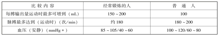 表2-1 经常锻炼的人与普通人的心脏对比