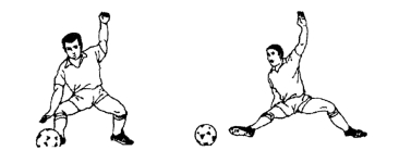铲球技术多用于对手已突破防线,防守队员又无法回到正面抢球位置时。关键因素是适时倒地,随便倒地会延误下一行动,并使本方即刻失去一名有用的队员。因此,应首先以脚底、脚背或脚内侧把球铲掉,如图9-20所示。在铲球时,首先考虑能否铲到球,其次考虑是否可能犯规,而且还要看所处的场区和比赛局面有无必要这样做。