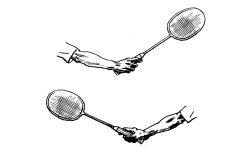 羽毛球运动最基本的握拍法有正手握拍法和反手握拍法(以右手握拍为例):