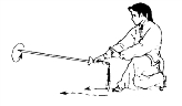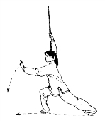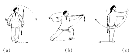 要点:向左拧腰,右臂前倾,左臂后展,两肩松沉。