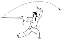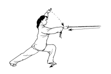 要点:转身削剑要快速,力达虎口侧剑刃前端。