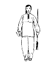 要点:两肩松沉,稍收腹,挺胸,两膝伸直。