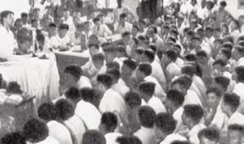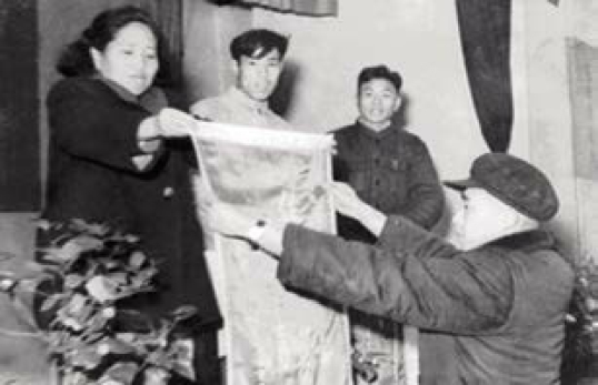1959年,中共省直机关党委召开湖南省档案先进工作者会议。图为副书记常杏云同志给先进工作者授奖。