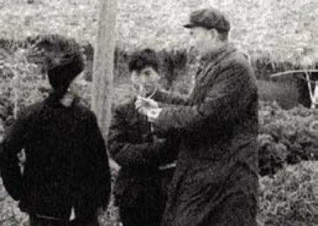 1963年,省委书记张平化(右一)在农村向农民请教林业生产问题。