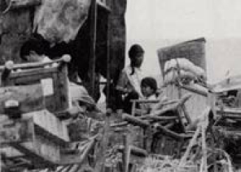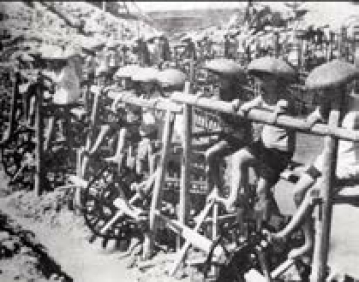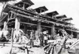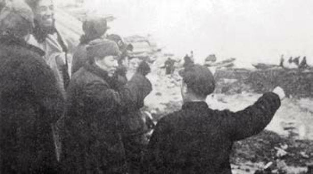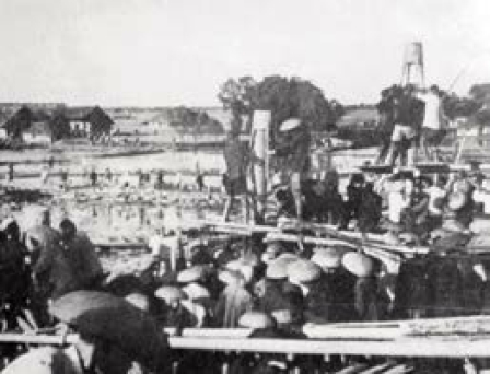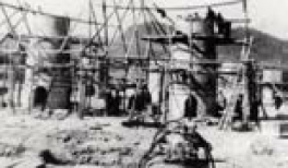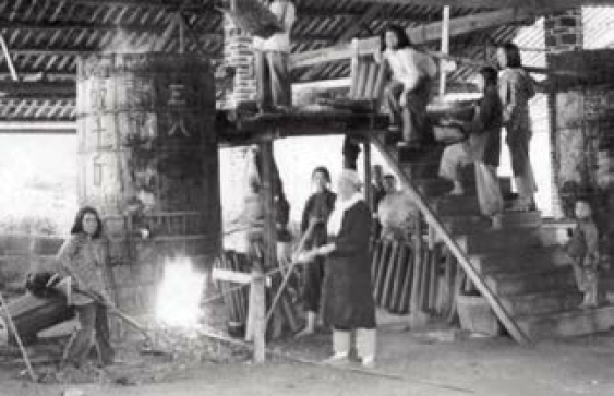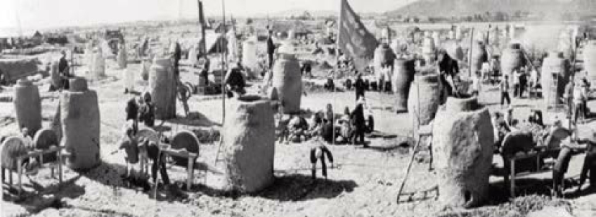 全国开展大炼钢铁运动。图为邵阳正在建设中的土高炉。