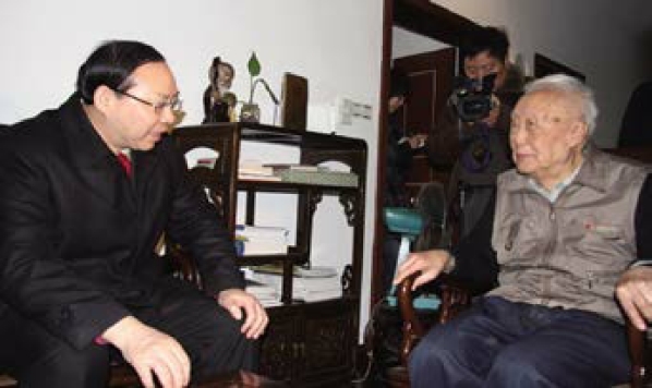 2009年,省委副书记梅克保在中南大学、湖南大学、湖南师范大学看望院士们。