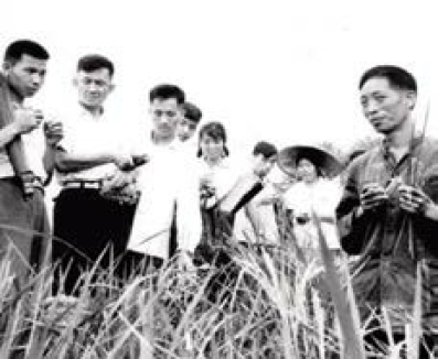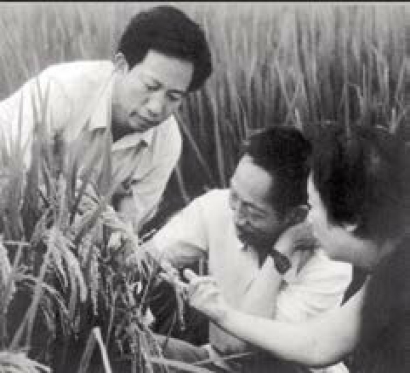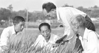 1970年,“杂交水稻之父”袁隆平和助手在稻田里做实验。