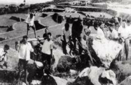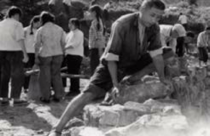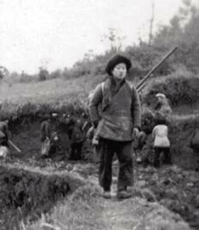 1975年,望城县桐木公社桐木大队支部书记游贵和带领社员们一起垒石造田。