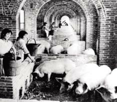 1972年,宁乡县在“农业学大寨”运动中大力发展养猪事业。图为塘湾大队的养猪场。