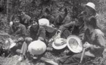 1968年,绥宁哨基口采育场的伐木工人在新作业区。