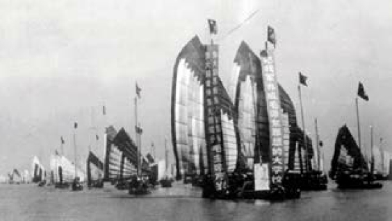1966年12月21日,15000名军民驾驶民船开向大通湖进行大规模农场开垦。