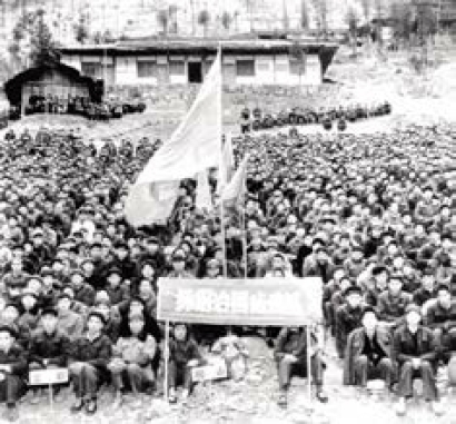 1971年,隆回县木瓜山水库建设工地上的誓师大会。