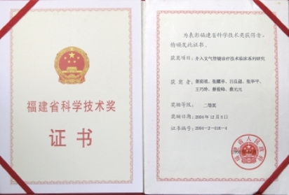 2004年,《介入支气管诊疗技术临床系列研究》获评福建省科技进步奖二等奖