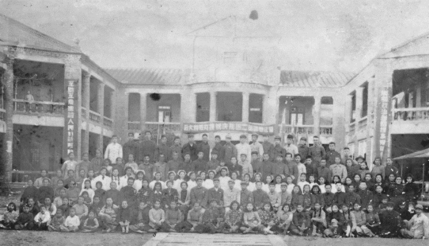 图1-1-1-11 1952年12月14日晋江专区第二医院在惠世楼前广场举行庆祝接办成功大会全体职工合影