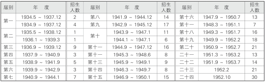 表1-1-6-1 惠世护士学校历届招生情况表