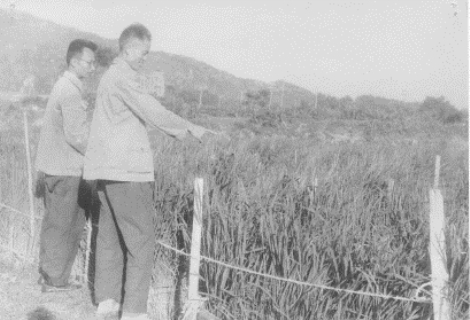 图1-2-1-1 20世纪50年代中后期医院职工在东海农场进行种稻、养猪等各种生产劳动