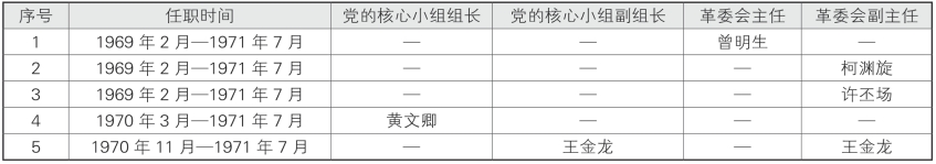 表1-2-11-2 晋江专区反帝医院(1969年2月~1971年7月)历任党政领导