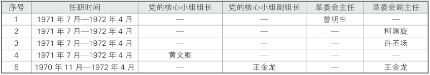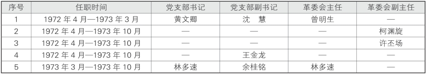 表1-2-11-3 晋江地区第二医院(1971年7月~1972年4月)历任党政领导