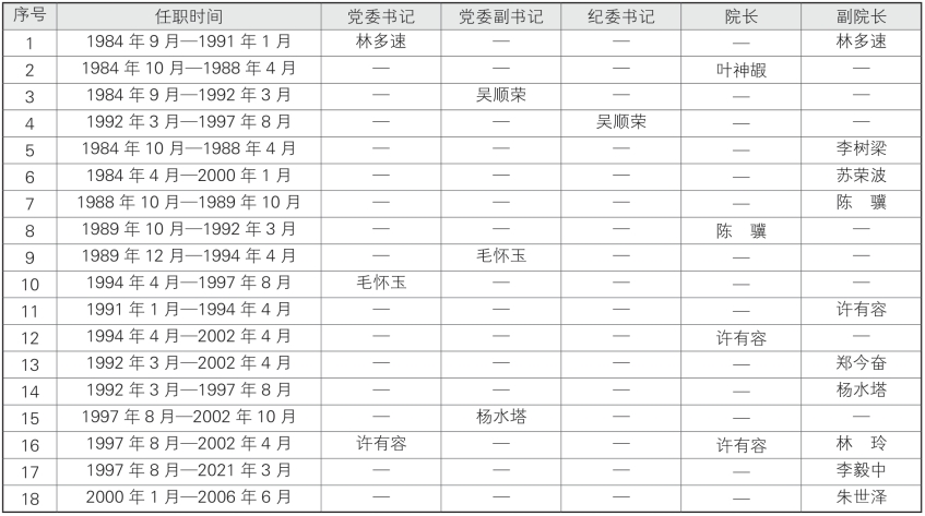 1978年5月15日中共福建医科大学委员会决定成立附属第二医院党总支部,同时取消革委会,恢复院长及院务机构。1984年9月成立党委会,这一时期的医院党政领导班子如下。(见表1-3-17-1至表1-3-17-5)