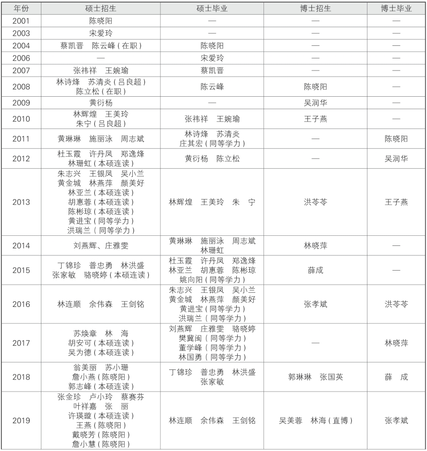 2000年,曾奕明被遴选为福建医科大学呼吸内科专业首批硕士研究生导师,并于2001年招收首位全日制研究生陈晓阳。