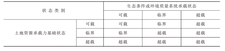 表2-5 生态条件与环境质量系统的综合承载状态校正判断矩阵表