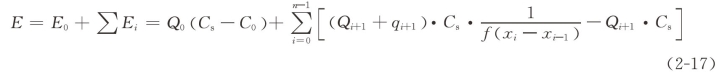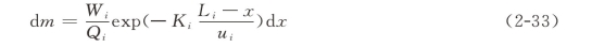因此,单位时间内经过x=Li所在断面的污染物总质量,应为上游Li长度河段内各微分长度段排放的质量降解至本断面剩余质量的叠加。计算式如式(2-34)所示。