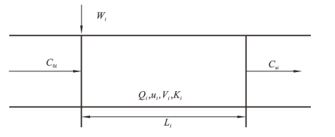 设有某河段i,如图2-6所示,根据上述水环境容量定义,可以给出该河段水环境容量计算公式如式(2-23)和式(2-24)所示: