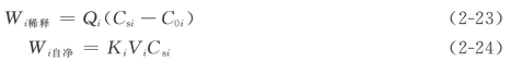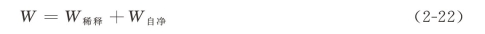 在给定的水质目标、设计水量、水文条件情况下,水体所能容纳污染物的最大数量,称为某河流的水环境容量。按照污染物降解机理,水环境容量W可划分为稀释容量W稀释和自净容量W自净两部分,如式(2-22)所示: