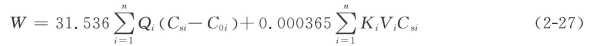 式中:W为水功能区水环境容量,t/a;其他符号的意义和量纲同前。