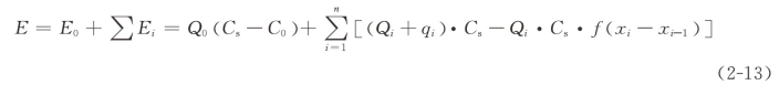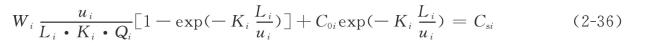 对河段下游边界的浓度贡献值则为,流入水质C0i对河段下游边界的浓度贡献值为