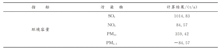 表2-11 工业集聚区的大气环境容量
