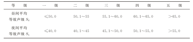 根据《环境噪声监测技术规范城市声环境常规监测》(HJ 640—2012)中要求的方法,首先计算整个评价区域的噪声总体水平,然后将整个评价区域全部测点测得的等效声级分昼间和夜间进行算术平均运算,所得到的昼间平均等效声级Sd和夜间平均等效声级Sn,代表该评价区域的环境噪声总体水平。因此,整个评价区域的声环境总体水平按照表3-18进行评价。