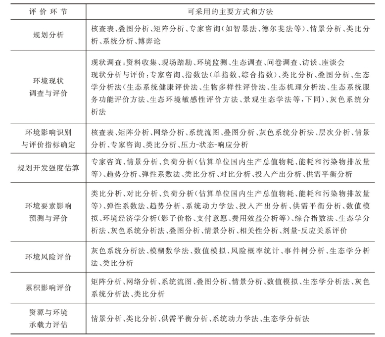 由于规划种类繁多(如总体规划、区域规划、专项规划等),涉及国民经济的方方面面,因此目前还没有专门针对各种规划的环境影响评价通用方法。实际工作中,环评技术人员通常将建设项目中的一些方法借用到规划的环境影响评价工作中,取得了与实际相近的结果。