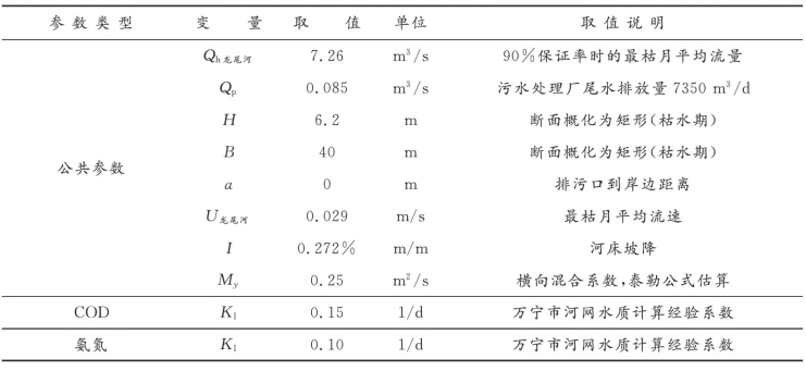 由于CODCr和氨氮为非持久性污染物,故选用上述二维稳态混合衰减模式。My采用泰勒法估算,即