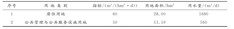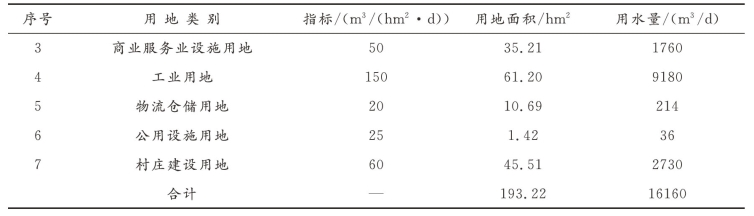 规划区用水量预测采用分项建设用地指标法或单位面积用水量指标法来计算用水量。根据给水规划规范,城镇单位建设用地综合用水量指标应为0.4~0.8万m3/(km2·d)。经计算,规划远期最高日用水量约为16500 m3,具体情况如表4-12所示。