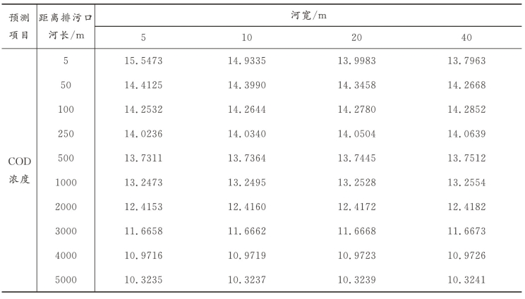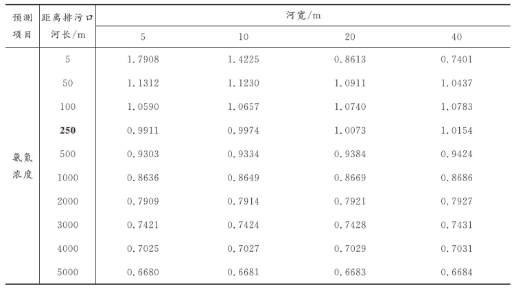表4-16 达标排放工况下龙尾河COD、氨氮浓度预测结果 (单位:mg/L)