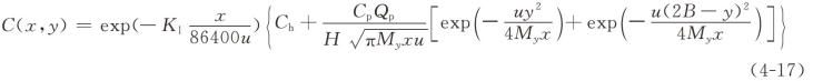 对于非持久性污染物,岸边排放,则采用以下二维稳态混合衰减模式,即