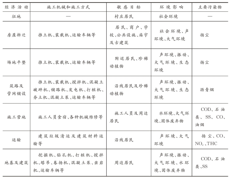 建设期的环境影响是多方面的,施工项目不同,其产生的环境影响范围和程度会有较大的差别。因此,在引进项目过程中要做好施工期的环境影响分析,确定敏感目标,制定具体的环境保护措施,以便将施工过程的环境影响降至最低。这里仅针对不同经济活动、施工方式,开展该规划项目建设期的环境影响评价。