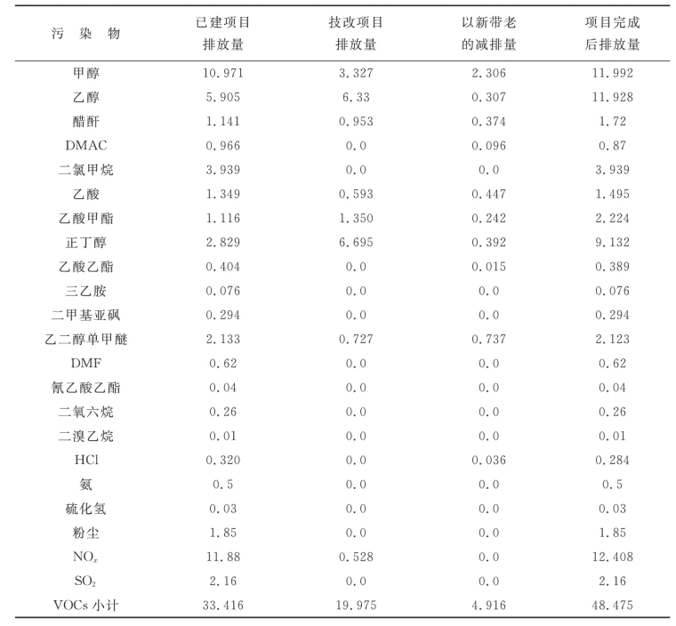 根据现有生产线污染物的排放浓度,参考国内采用先进生产线后污染物的排放浓度,计算得到该技改项目已建项目的典型污染物排放量和技改项目典型污染物的排放量,结果如表4-20所示。