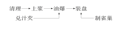 (3)爆制:①用黄酒、白酱油、果醋、味精、湿淀粉、白胡椒、芝麻油及姜、葱、蒜茸调成兑汁芡。②将精炼油加热至160℃,迅速倒入虾、肫油爆,变色即起,滤去油。将兑汁芡与虾脆同时下锅,迅速翻拌均匀,出锅,装在雀巢中即成。