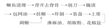 (4)装盘:将鱼装入长盘(或竹篓),遍撒芝麻油、胡椒粉与花椒盐在鱼上即成。