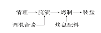 (3)烤制:①取小烤盘1只,先撒入花椒、香叶、丁香再将京葱入烤盘,最后铺入球葱、西芹。②将腌渍的鳗鱼皮朝上排在笼上,将麦其林切成薄片铺在鱼上,用220℃温度烤15分钟出炉,将鱼肉翻身再烤15分钟,出炉刷一层芝麻油。