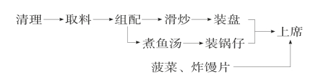 (5)成菜:将炒熟的鱼片、鱼汤(带酒精炉)与菠菜一盘,炸馒片一盘,一同上桌。