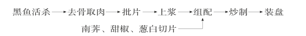 (2)取料:①将鱼头、尾加味蒸熟待用。②将鱼段去脊、肋骨,斜刀批夹刀片,漂白。