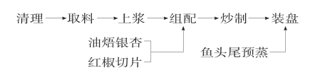 (3)组配:将鲫鱼块上蛋粉浆与15颗银杏、15片红椒组成生坯待炒。