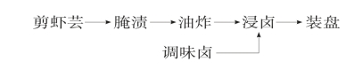 (2)浸卤:①将姜葱末、鸡汁酱油、南卤、芝麻油、陈醋、绵白糖、绍酒5克一道调和成味汁。②将大虾出锅立即浸在味汁卤中拌匀,待10分钟左右,大虾吸味时排盘上席。