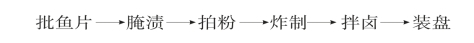 (2)拍粉预炸:将油上锅加热至200℃,将鱼片遍拍干淀粉逐一投入油中炸起金黄捞出。